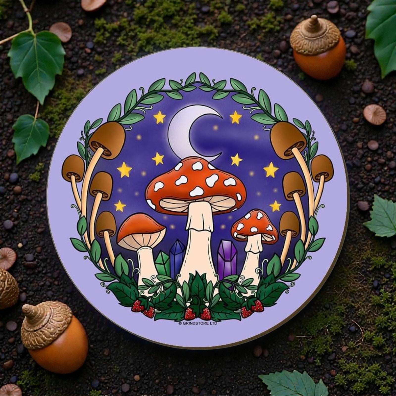 Forest Fungi Mushroom Toadstool Coaster Alternative Gift Nature Moon Tea Coffee