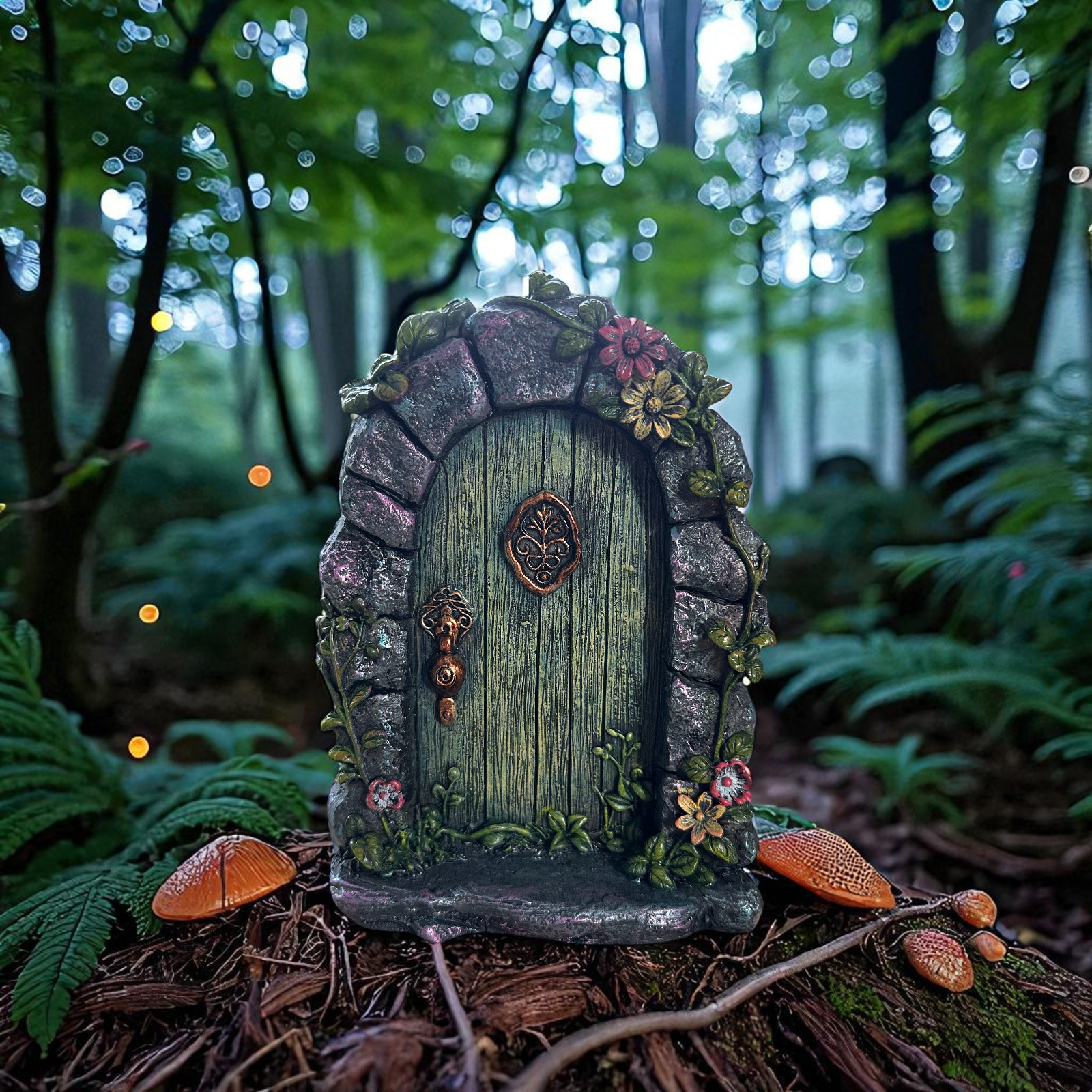 Step into an enchanting woodland realm with this Large Green and Purple Shimmer Fairy Door. Crafted from durable polyresin, its intricate flower and leaf design invites mystical pixies to call it home. Perfect for adding a touch of magical charm to your garden or indoor fairy corner, this door creates a whimsical gateway to imagination and wonder.